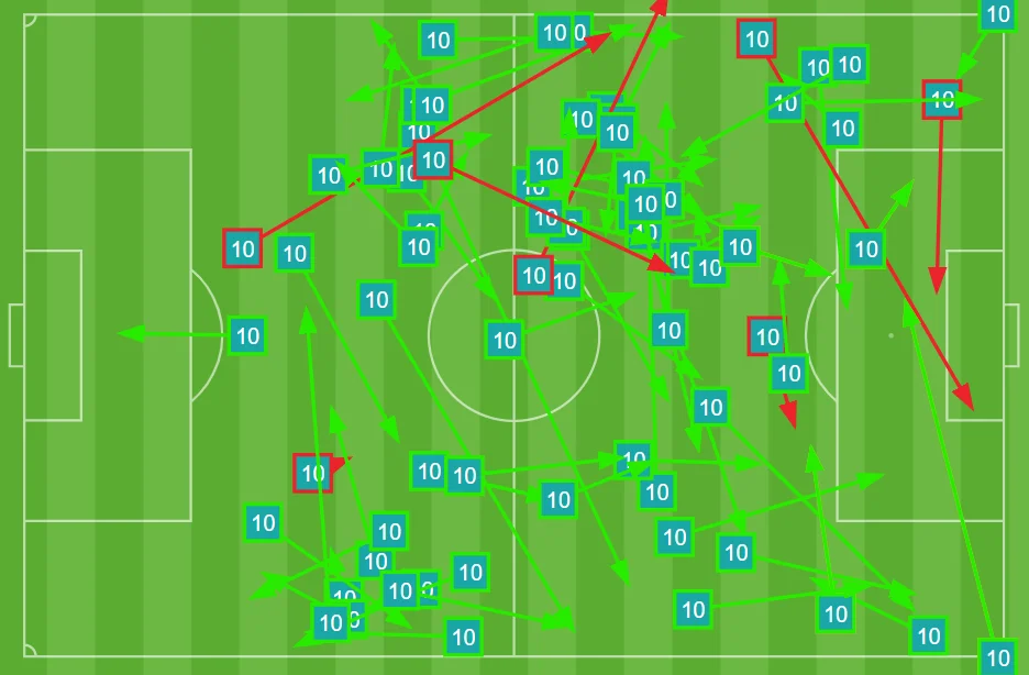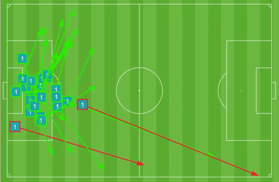 Знову ж таки, варто відзначити карту передач від Тібо – він майже не помиляється, хоча пасує на значну дистанцію. Звісно, це не рівень тер Штегена, у якого кожен другий пас – діаголь під прорив – але Луніну слід вчитись такому скілу. Ногами українець точно програє мобільному й спокійному Куртуа.
