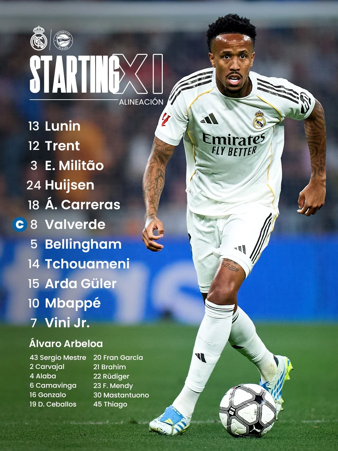 Стартовий склад Реала: Лунін – Александер-Арнольд, Мілітао, Хьойсен, Каррерас – Вальверде, Беллінгем, Чуамені – Арда Гюлер, Мбаппе, Вінісіус.