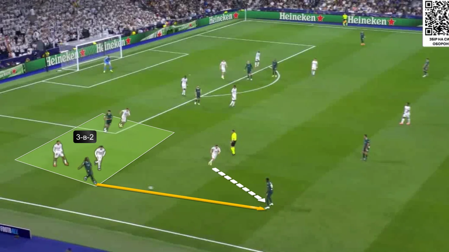 Ліворуч же Альваро Арбелоа вирішив обійтись без допомомги Вінісіуса. Бразильця вивели повище, а за роботу в середньому блоці відповідав працьовитий Гюлер. Важливо, що захист Реала не зводився до індивідуального перфомансу виконавців (а також дуже мобільного Пітарча в опорній зоні) – цього разу вся оборона злагоджено зміщувалась, ротувалась позиціями та перебирала суперників.