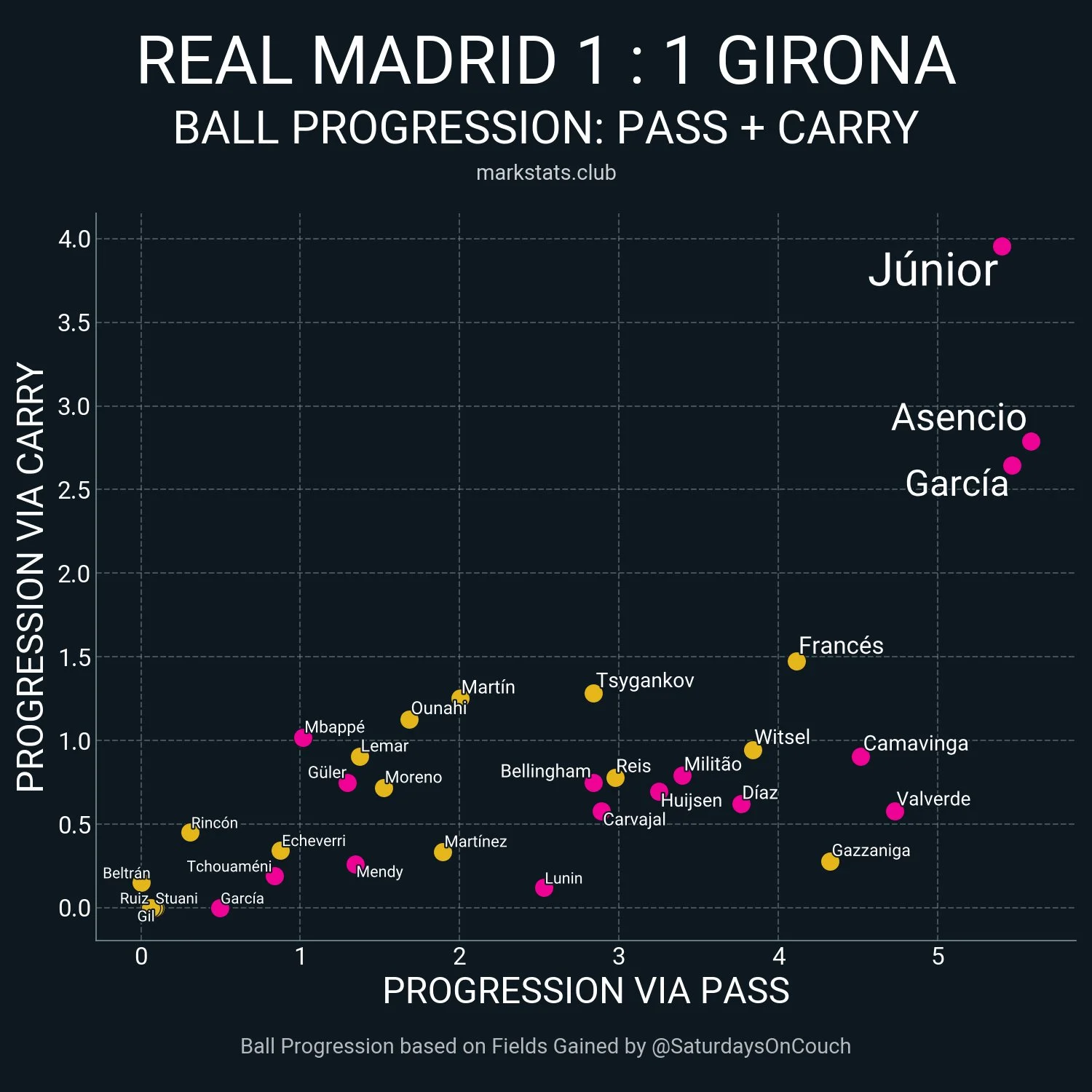 З одного погляду, цей гол виявився таким же випадковим, як і лонгшот Вальверде. З іншого, треба говорити про більшу агресію Жирони в другому таймі. Підопічні Мічела почали високо пресингувати Реал і провели низку цікавих контрвипадів. У них виділявся й Циганков.