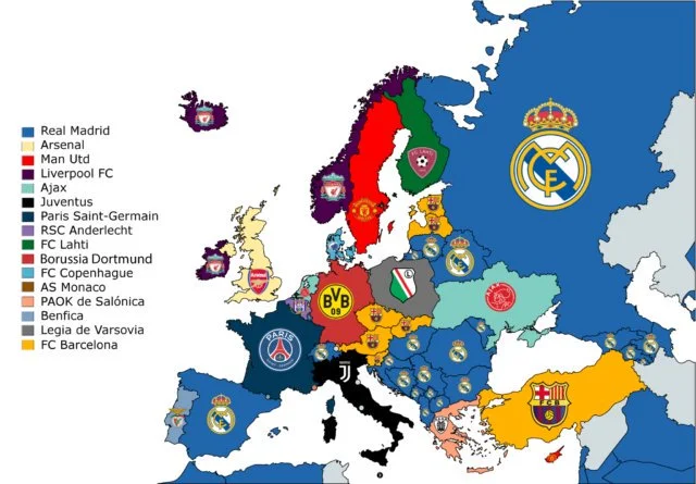 У Європі Реал є найпопулярнішим в Інтернет-середовищі Іспанії, Швейцарії та багатьох країн Південно-східної Європи. У Німеччині (Борусія Д), Франції (ПСЖ), Італії (Ювентус), Англії (Арсенал), Португалії (Бенфіка), Польщі (Легія), Нідерландах (Аякс), Бельгії (Андерлехт), Греції (ПАОК), Данії (Копегаген), Фінляндії (Лахті) є власні лідери за пошуками.