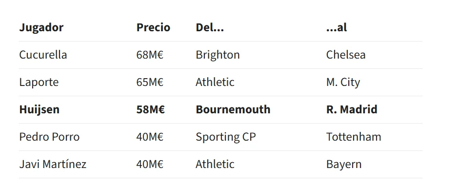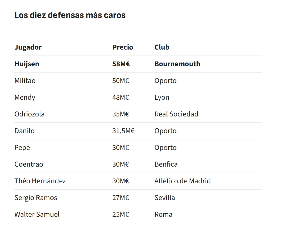 Крім того, Хьойсен входить до топ-3 найдорожчих іспанських оборонців. Більше коштували лише Макр Кукуренья та Емерік Лапорт.
