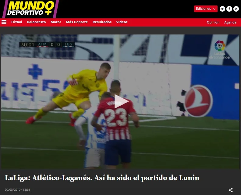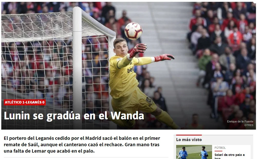 Андрій Лунін вперше за довгий час отримав ігровий час в складі Леганеса завдяки дискваліфікації свого конкурента. Він видав декілька чудових сейвів і парирував 4-й поспіль пенальті в кар'єрі, чим довів, що зберігає прекрасну форму. Іспанська преса не втратила шансу засипати українця компліментами та обговорити, як його величезний потенціал допоможе Реалу.