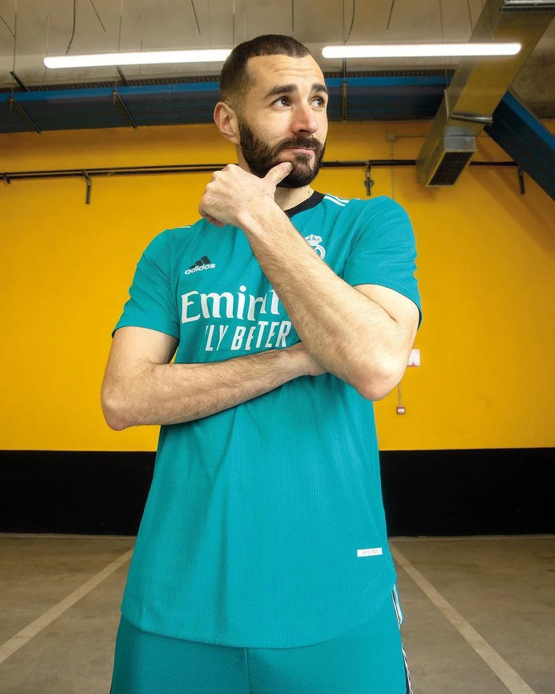 Реал показав третю форму на сезон 2021/22. Фото опубліковані на офіційному сайті клубу. Комплект виконаний у бірюзовому кольорі з білими та чорними вкрапленнями.