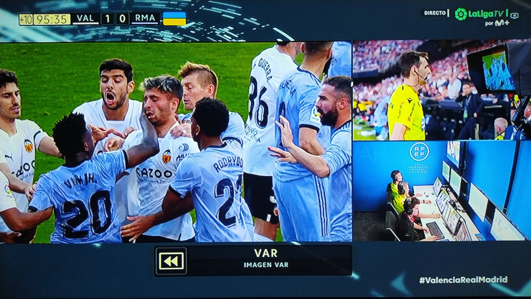 З іншого боку, гра на Местальї була брудною й скандальною – і це не дозволяло мадридцям зрівняти рахунок. Зокрема, арбітр Рікардо де Бургос Бенгоечеа прийняв контрверсійне рішення не призначати пенальті на 80-й хвилині, коли Лато збивав Вінісіуса.