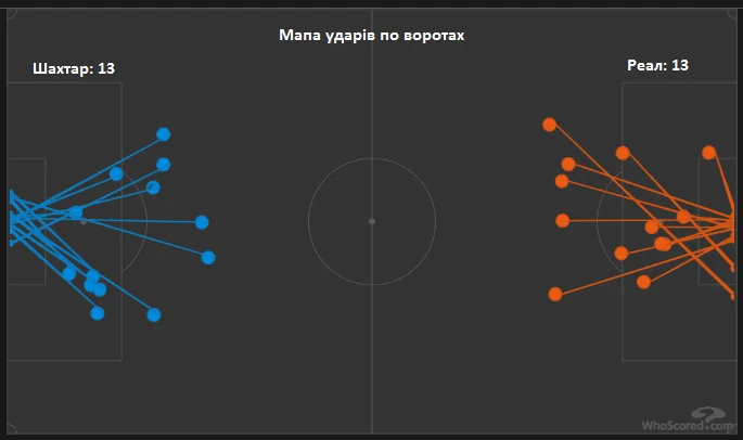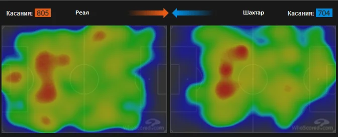 За великим рахунком, цифри матчу відображають його перебіг. На відміну від гри третього туру, Шахтар не поступився ні у контролі м'яча, ні за ударами по воротаї, ні за небезпечними моментами. Теплова мапа матчу взагалі вражає. Нечасто можна спостерігати картину, де гості Сантьяго Бернабеу мають найбільш гарячі плями навіть не то що на половині поля суперника, а на кордоні між другою та фінальною третиною. Шахтар змусив Реал більше використовувати довгі передачі.