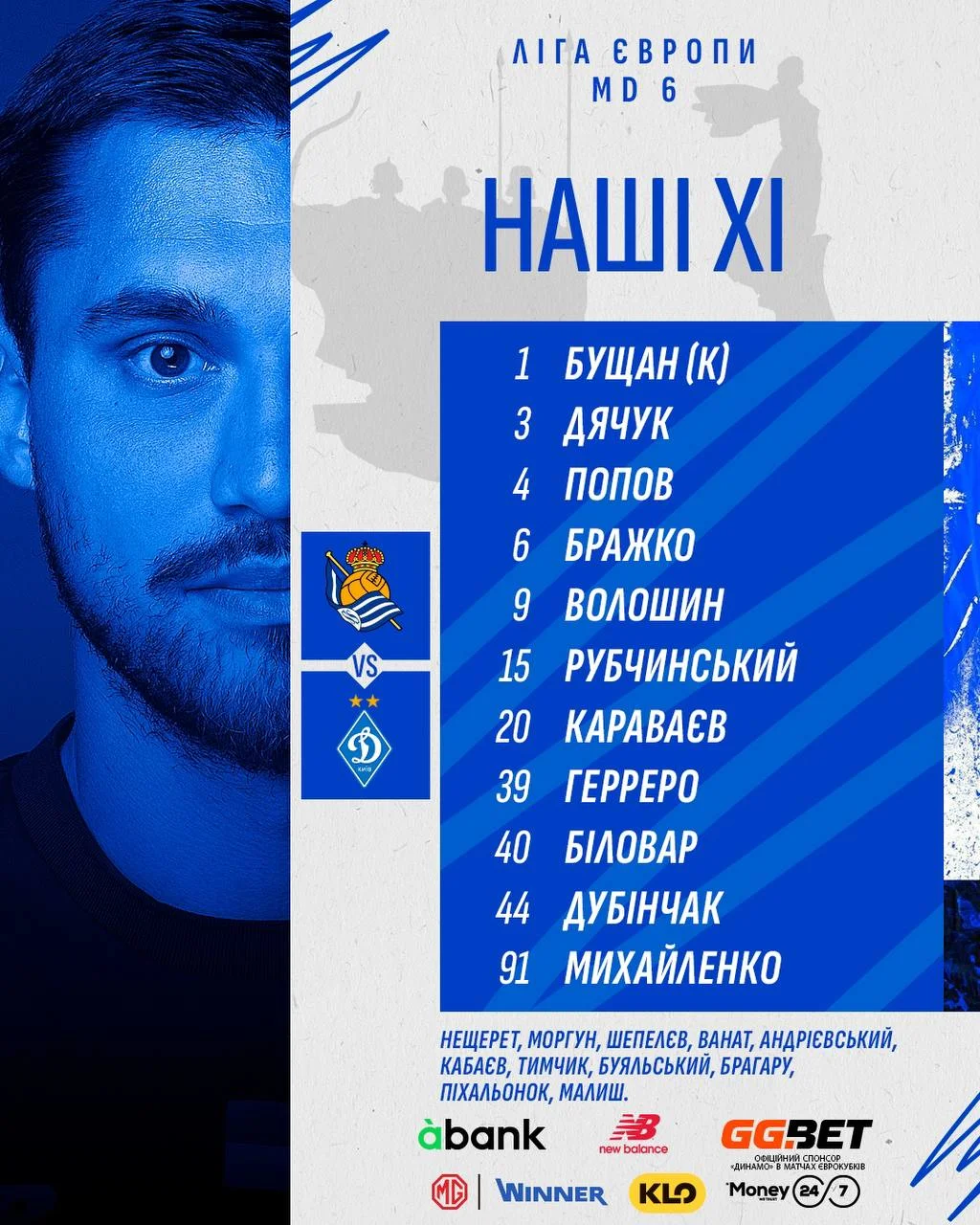 Динамо: Бущан – Біловар, Попов, Дячук – Караваєв, Бражко, Михайленко, Дубінчак – Волошин, Герреро, Рубчинський