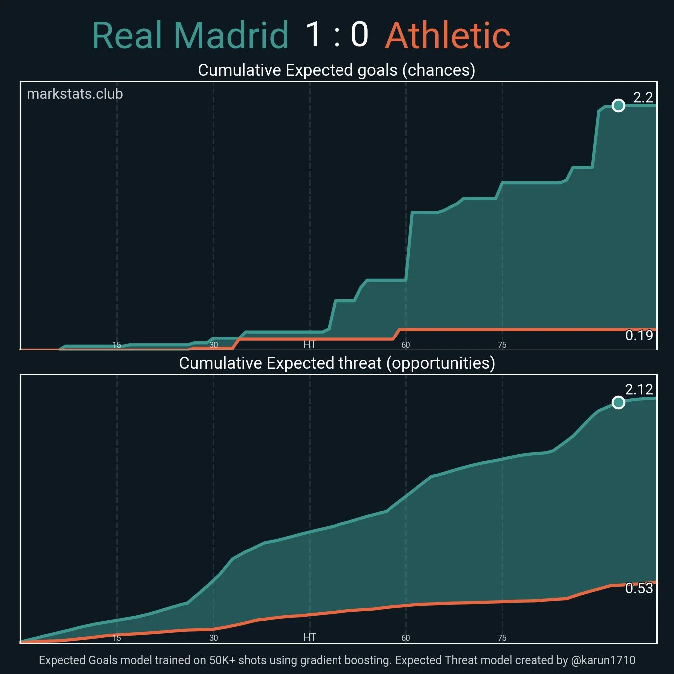 Мадридці мали б стартувати з місця в кар'єр, аби довести випадковість вильоту з ЛЧ. Здавалося, що господарі зараз заведуться і влаштують винос – втім, нічого подібного не сталося. До перерви гра тривала у повільному темпі, а моментів не створювали взагалі. Реал провів 5 ударів на 0,16 xG при 9-ти дотиках у штрафному.