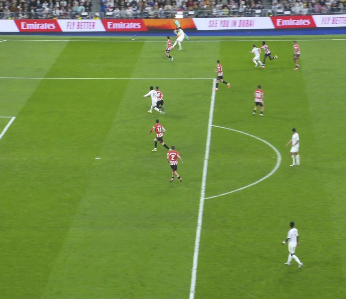 На останніх хвилинах Реал істерично навалювався на штрафний басків. Беллінгем знову схибив з лінії воротарського, а дальній удар Вальверде з відскоком від газону парирував Сімон. Атлетік був в одному кроці від нічиєї – але не встояв.