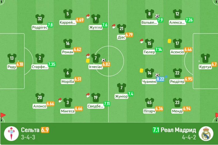 А ще через дискваліфікації випали Каррерас, Хейсен і Мастантуоно. Як мінімум ці проблеми били по глибині складу. А суперник зараз на ходу – галісійці виграли чотири матчі поспіль, тримаючись у трьох очках від топ-5 Ла Ліги. Команда Клаудіо Хіральдеса у першому колі ще й розбила Реал на Бернабеу (2:0), тож ймовірність осічки мадридців була дуже великою.
