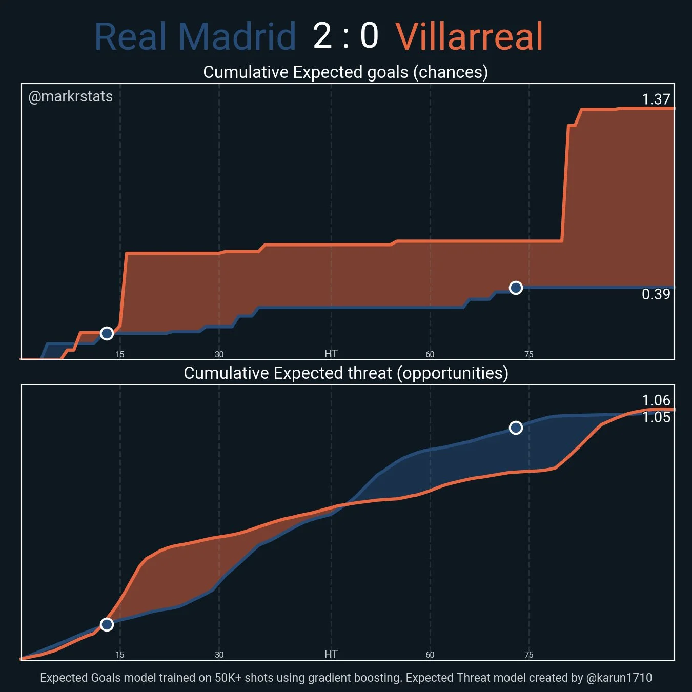 Цей момент став останнім для Реала у зустрічі. Загальний атакувальний перфоманс має розчаровувати Карло Анчелотті – його підопічні провели всього 23 дотики в штрафному, завдали 11 ударів і тільки 2 рази влучили у площину воріт. Показник очікуваних голів зупинився на мізерних 0,39 xG.