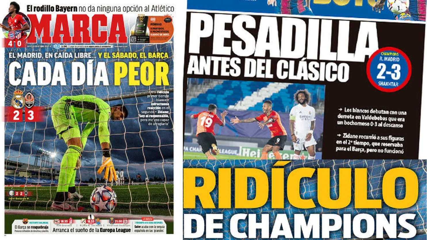 Рупор мадридської преси пише про "вільне падіння" команди Зідана. Цього разу – без найменшого натяку на лояльність до королівського клубу, який знищують брутальними епітетами. "Посміховисько" або "катастрофа" найчастіше зустрічаються на сторінках електронної версії Marca. Натомість Шахтар отримав цілу купу компліментів. Донеччан хвалять за відважність у критичній для клубу ситуації.
