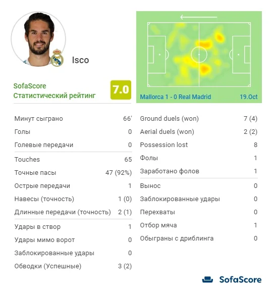 Іско взагалі не робив чогось такого, що загрожувало б воротам Мальорки. Один абсолютно безпечний для Рейни удар, єдина гостра передача за 66 хвилин гри та регулярна втрата ритму – це все, чим запам'ятався андалусійський хавбек. Пролетівши повз заявку збірної Іспанії на поєдинки кваліфікації Євро-2020 проти Норвегії та Швеції, він начебто дев'ять днів не вилазив з тренувальної бази Реала у Вальдебебас, щоб набрати оптимальні кондиції, але все даремно. Зараз Іско нагадує лише бліду тінь футболіста, за якого Реал свого часу виклав 30 млн євро. Починаючи з сезону 2014/15 участь Іско у матчах Реала невпинно знижується: 71%, 56%, 42%, 53%, 33% та жалюгідні 13% від потенційного ігрового часу у поточній кампанії.