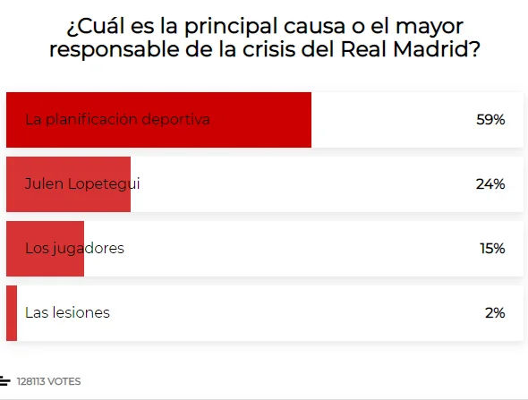 Кадровий потенціал Реала значно слабший, ніж у попередні сезони. Протягом двох років команду покинули Хамес, Ковачіч, Пепе, Мората та Роналду. У Віторії через травми Бензема і Бейла мадридці завершували матч з експериментальним тріо форвардів Асенсіо-Маріано-Вінісіус. 18-річний бразилець, для прикладу, лише проходить період адаптації до європейського футболу. Він не готовий давати результат прямо зараз. Відтак, доволі логічно, що 59% читачів, які взяли участь у опитуванні видання Marca, звинувачують Переса та його директорів у невдалому плануванні на сезон.