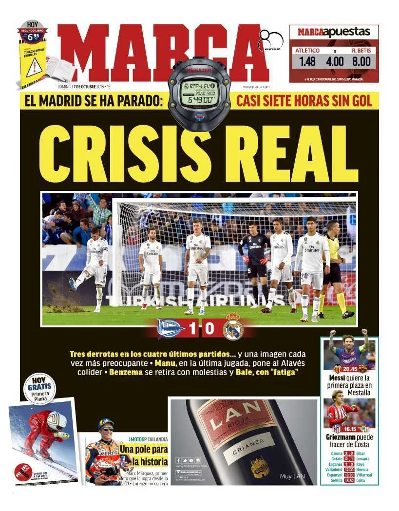 Лопетегі після фіаско у Віторії спробував заспокоїти команду та фанів, мовляв, на дворі лише жовтень, ще все можна виправити. Це – правда. Мадрид не вперше провалює старт сезону, так траплялось навіть при Зідані. Однак симптоми хвороби нинішнього Реала значно страшніші, ніж у попередні роки. Доволі складно закрити очі на те, що безгольова серія "вершкових" триває вже 6 годин і 49 хвилин. Схожа посуха коштувала відставки двом іншим наставникам мадридського суперклубу – Воядіну Бошкову (1982) та Амаро Амансіо (1985). Тоді "вершкові" також не відзначались 4 матчі поспіль.