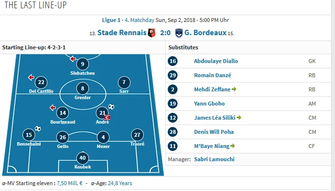 Капітаном Ренна є 28-річний опорник Бенджамін Андре. Універсал, який може зіграти і на обох флангах півзахисту, і ближче до чужих воріт. У поточному сезоні на його рахунку гол плюс пас і входження в символічну збірну туру за версією L'Equipe.