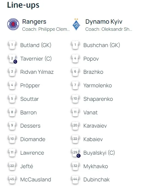 Рейнджерс – Динамо: онлайн-трансляція матчу ЛЧ – Шовковський і Клеман назвали склади, тренери внесли 4 зміни