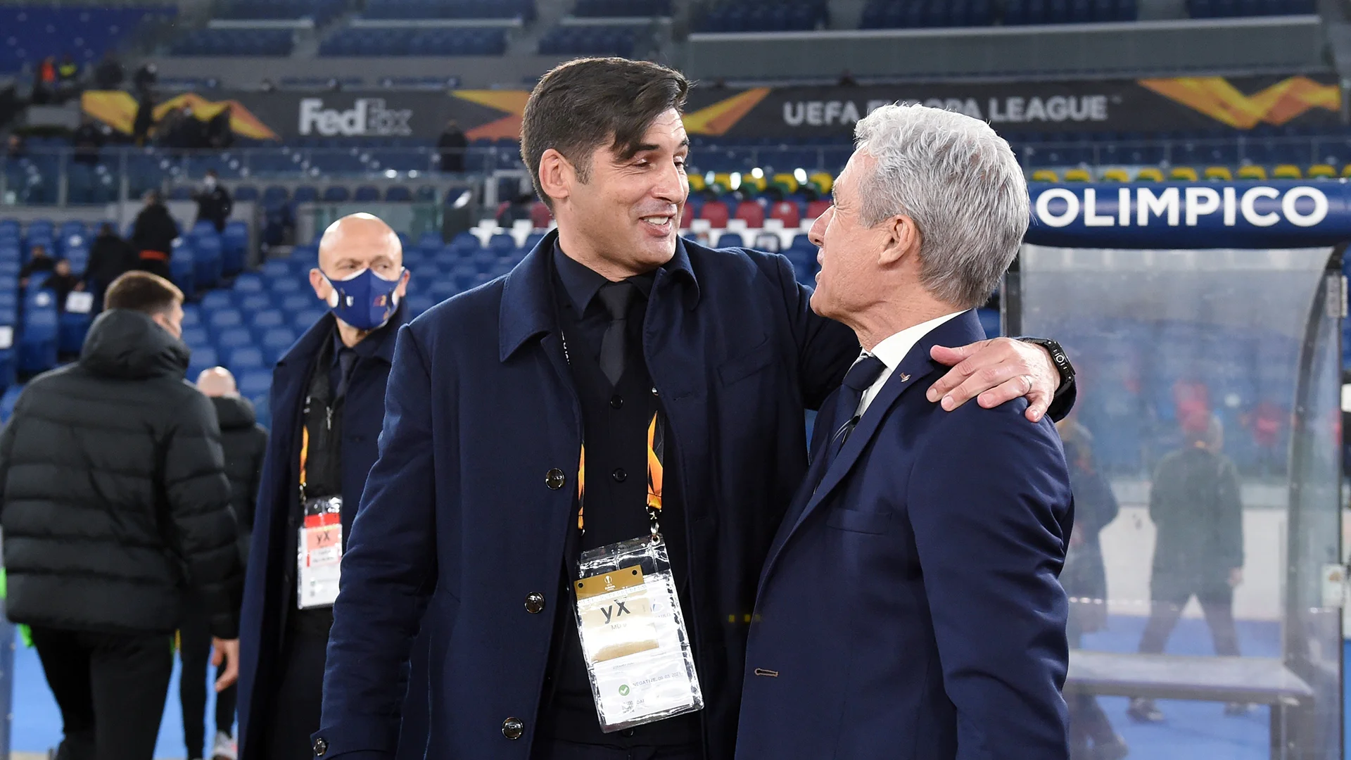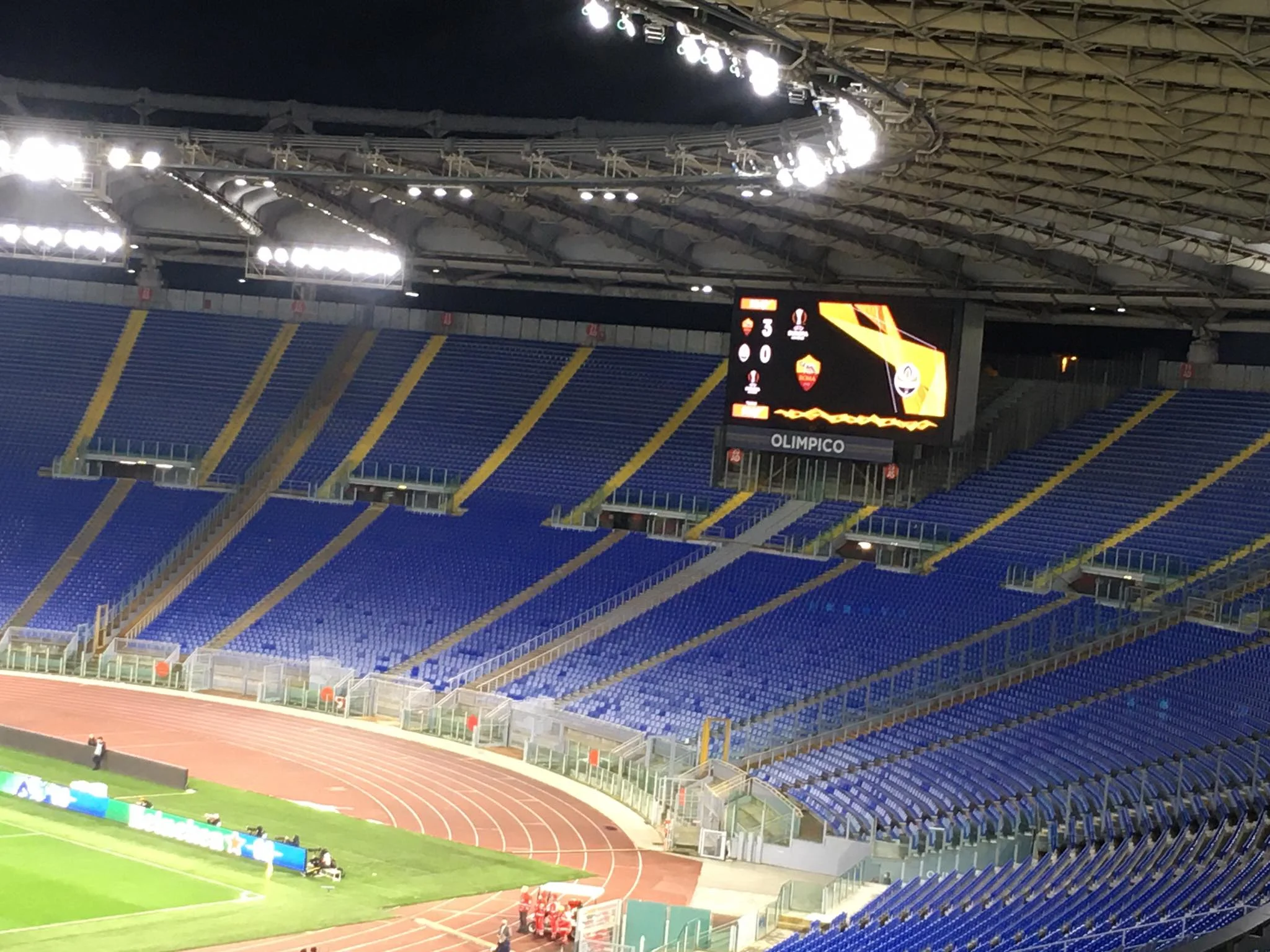 На порожньому Стадіо Олімпіко все чутно ідеально. Один з журналістів вступив у перепалку зі стюардами після зауваження правильно одягнути маску. Брак італійського лексикону не дав змоги зрозуміти деталі, але в підсумку агресор змирився та повернув маску на обличчя.