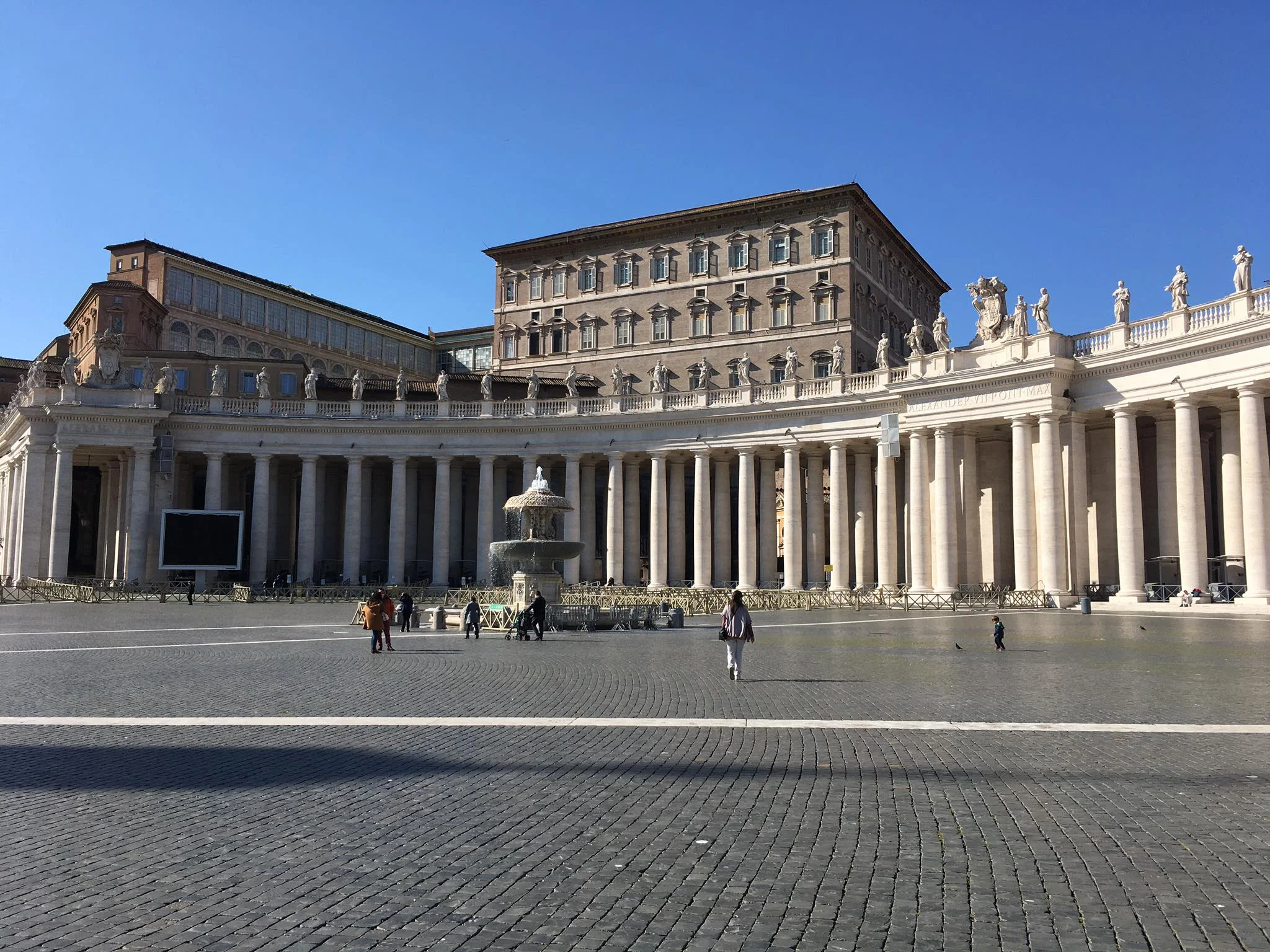 Ми жили за 5 хвилин ходьби від Ватикану, тому заглянути на Площу Святого Петра – програма мінімум. Людей там менше, ніж полісменів. Хтось чілить на сонці, хтось намагається нормально сфотографуватися в масці, хтось дивитися за зміною караулу Швейцарської гвардії, яка вже 5 століть служить Папі.