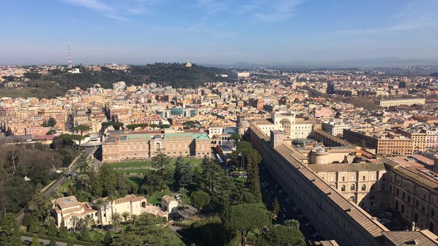 8 євро в касу, декілька сотень крутих сходин – і ми з колегою на куполі Собору. Навколишній Рим – як на долоні.