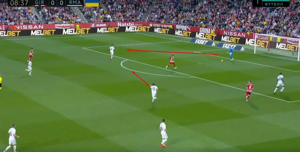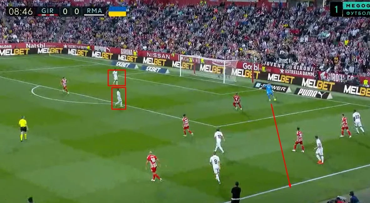 Андрій Лунін вийшов на поле вперше з 15 лютого. У діях українця була помітна нервозність. Показовий момент трапився вже на 9-й хвилині, коли наш воротар не розібрався у простій ситуації. Довго думав, що робити з м'ячем, хоча Модріч просив зіграти праворуч на відкритого Мілітао. Андрій обрав протилежний фланг, де у господарів була кількісна перевага. Зрештою мадридці не зуміли вийти з-під пресингу, тож Лунін банально вибив м'яч в аут.