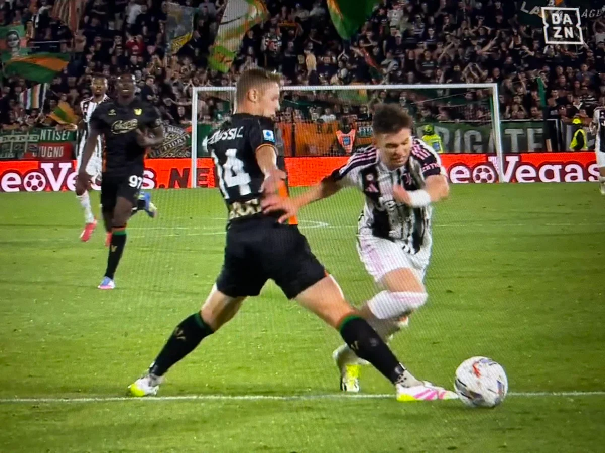 Звісно ж, столичні тіфозі слідкували за ходом зустрічі у Венеції, де "Стара синьйора" почала горіти з 2-ї хвилини. Філа вивів господарів уперед в надії врятуватись від вильоту у Серію Б, однак вже на 5-й хвилині гості забили у відповідь. От тільки гол Кошти не зарахували через ось таку гру рукою: