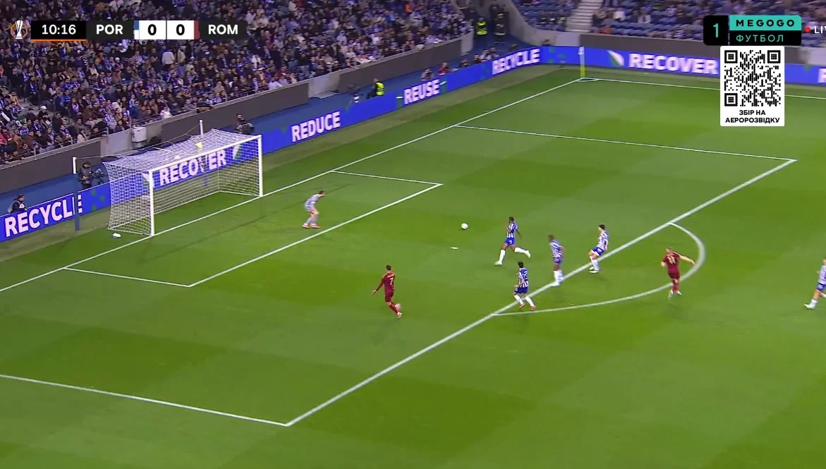 Порту зрівняв рахунок, а вже на 73-й хвилині опинився у більшості. Рому підставив Крістанте, який заробив другу жовту картку за зрив атаки. Клаудіо Раньєрі відреагував миттєво, знявши потьмянілого Довбика й кинувши у бій центрхава Паредеса. "Джалороссі" почали закриватись, захищаючи виїзну нічию.