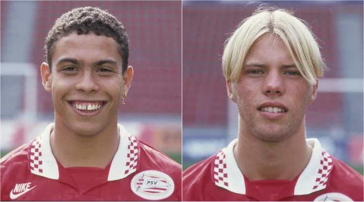 Нижче – хлопчиська, які прийшли сфотографуватись на паспорт. Саме так виглядали Роналдо, той, що "Феномен", та ісландський форвард Ейдур Гудйонсен на передсезонній фотосесії ПСВ (1994-1996). Що буде далі – усім добре відомо.