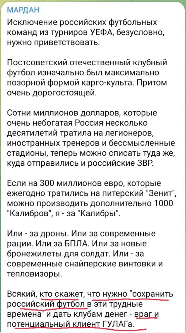 11:11. Хацкевич: Проти російських та білоруських спортсменів треба ще суворіші санкції. Позиція здорової людини, яка тренувала Динамо. Мірчі Луческу ознайомитися обов'язково! Казки про бідолашних спортсменів поза політикою у країнах, де панує тоталітарний нацизм і 99,9% футболістів усе це дуже навіть влаштовує, залиште собі.