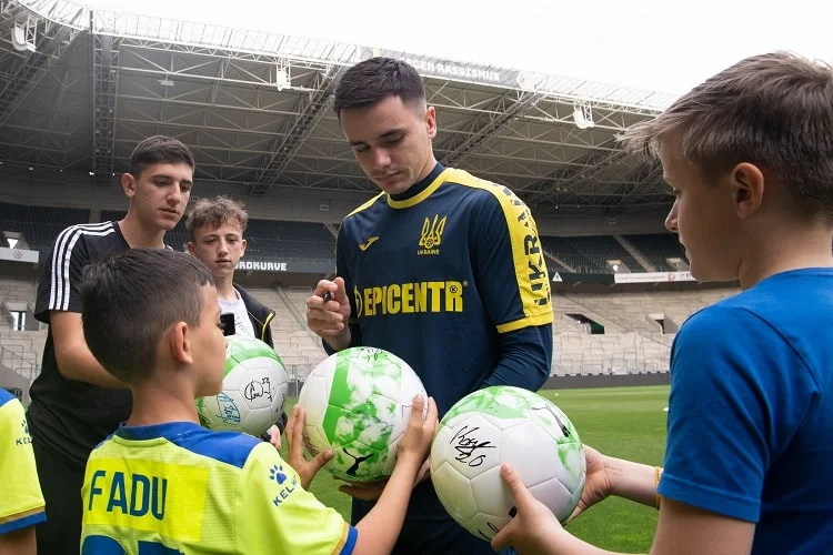 18:55. Гравці збірної України зустрілись з дітьми-біженцями у Німеччині перед матчем з Борусією.