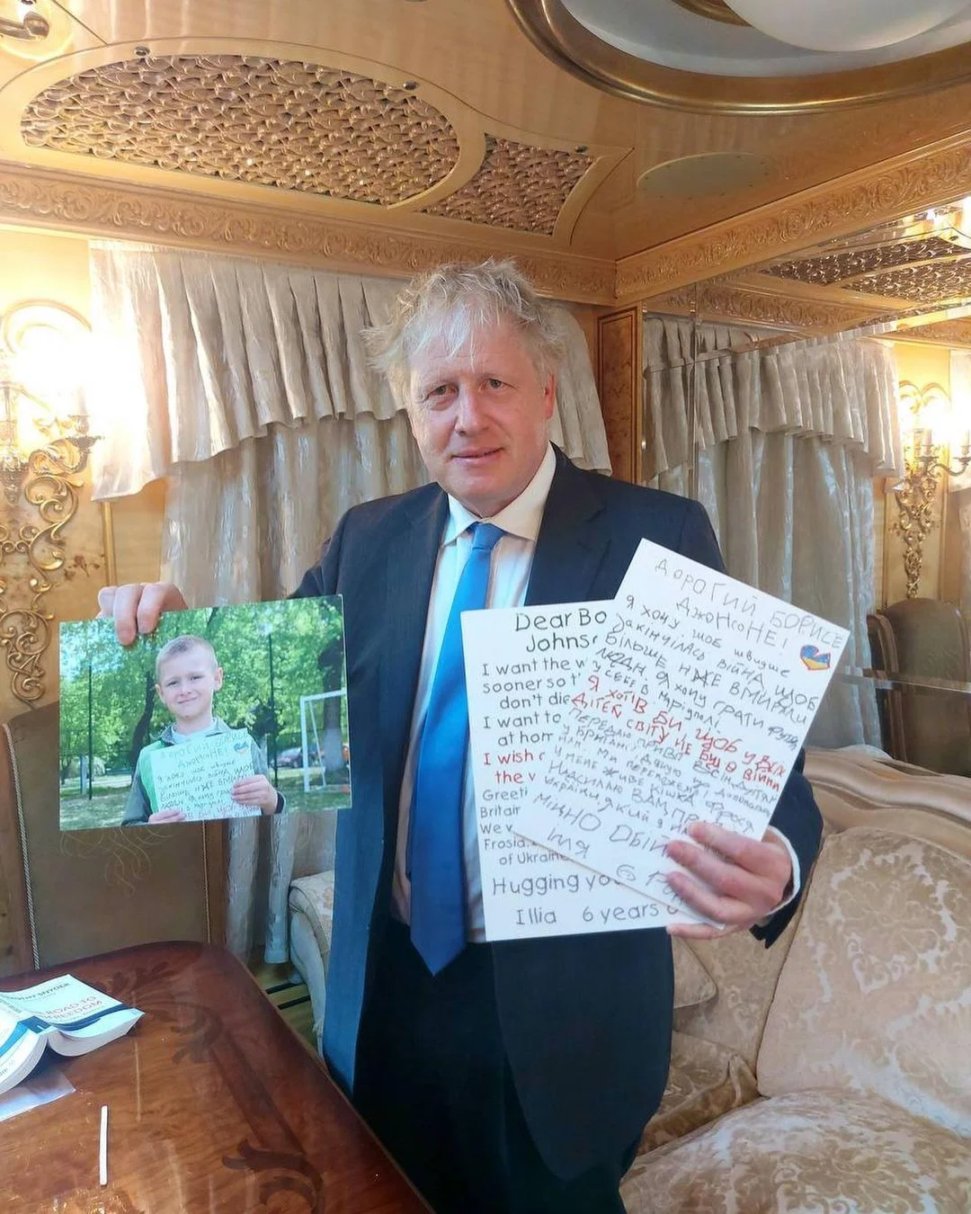 22:45. Прем'єр-міністр Великої Британії Борис Джонсон, який є великим другом України, знову відвідав Київ. Політику передали листа від хлопчика з Маріуполя, батьки якого загинули від рук росіян.