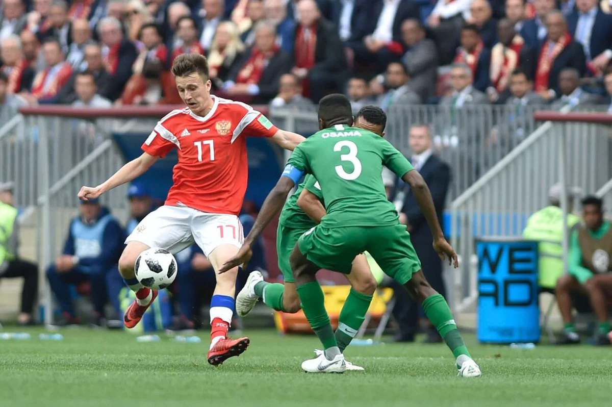 А згодом росіяни втратили креативного лідера середньої лінії Алана Дзагоєва, який зазнав, на перший погляд, важкої травми. Аравійці перехопили ініціативу, їм давали пробивати, але з прицілом виникали стабільні проблеми. Зусиллями Черишева, який вийшов на заміну, росіяни знову загострили ситуацію і забили. Півзахисник Вільяреала використав провал суперника спочатку на лівому фланзі захисту, а потім і праворуч. Черишев змусив двох опонентів, як дітей, проїхатись на п'ятій точці перед вирішальним ударом.