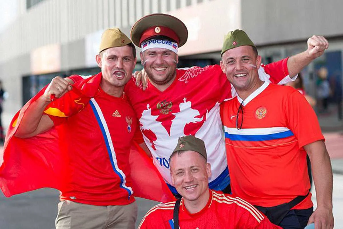 На відео чітко видно, як росіяни атакують англійців організованими групами у чорних футболках.