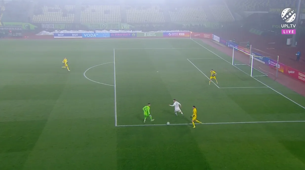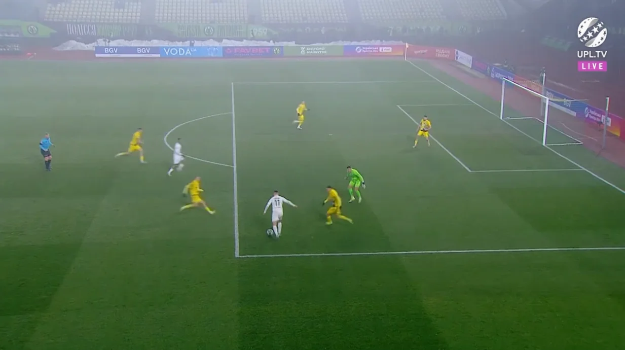 Пастух із лівого флангу виконав передачу у простір між центрбеком і фулбеком. Туди вривався Краснопір – Сарапій незграбно зіграв проти Ігора, а той увірвався на лівий край штрафного та прошив Волинця. 0:1!