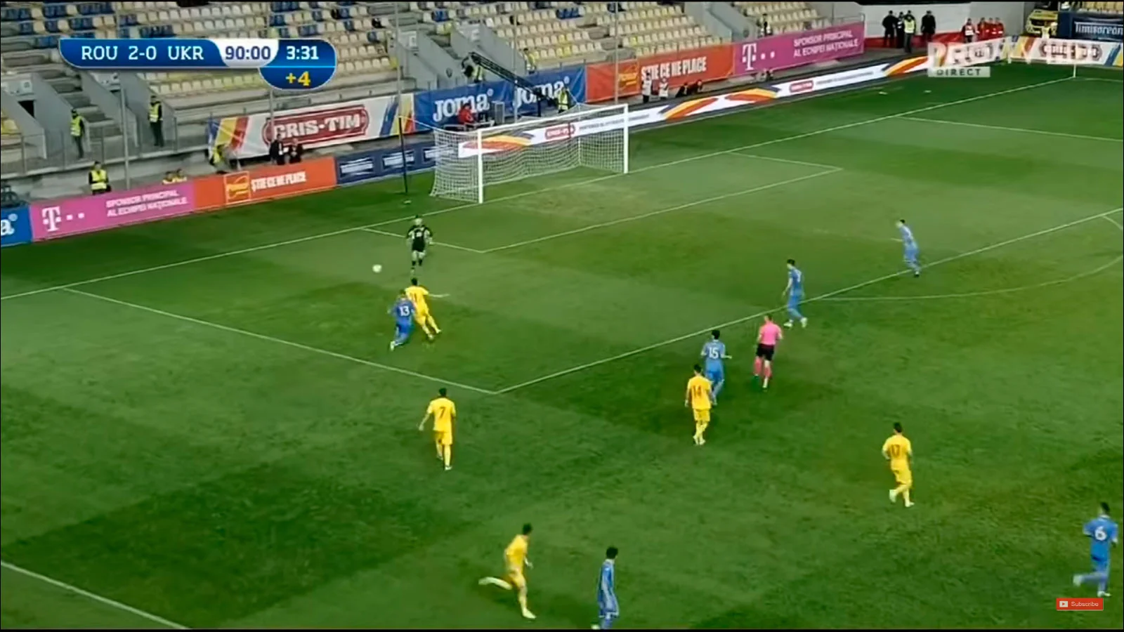 У другому таймі Україна несподівано заграла – причому одразу. Вже на 47-й хвилині Русин непогано прорвався правим флангом і заробив кутовий, а на 49-й він втік від захисників та отримав по ногах від Пашкану в метрах 20-ти від воріт, посадивши центрбека на жовту картку. Арбітр призначив штрафний, а Лєднєв завдав прямого удару в правий кут – стійка врятувала Румунію!