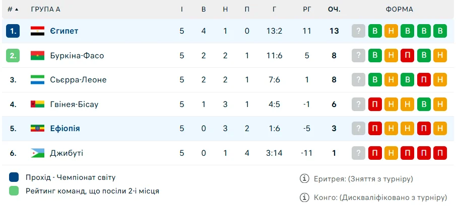 За результатом матчу Єгипет впевнено закріпився на першому місці в групі відбору на ЧС-2026, який пройде в США, Канаді та Мексиці.