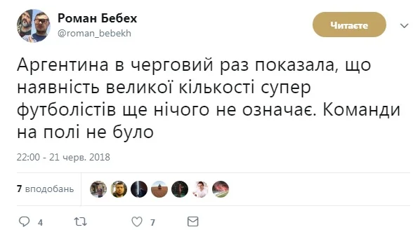 "Футбол 24" зібрав коментарі українських експертів та вболівальників щодо головної сенсації вчорашнього ігрового дня – розгромної поразки Аргентини від Хорватії (0:3) у 2-му турі ЧС-2018.