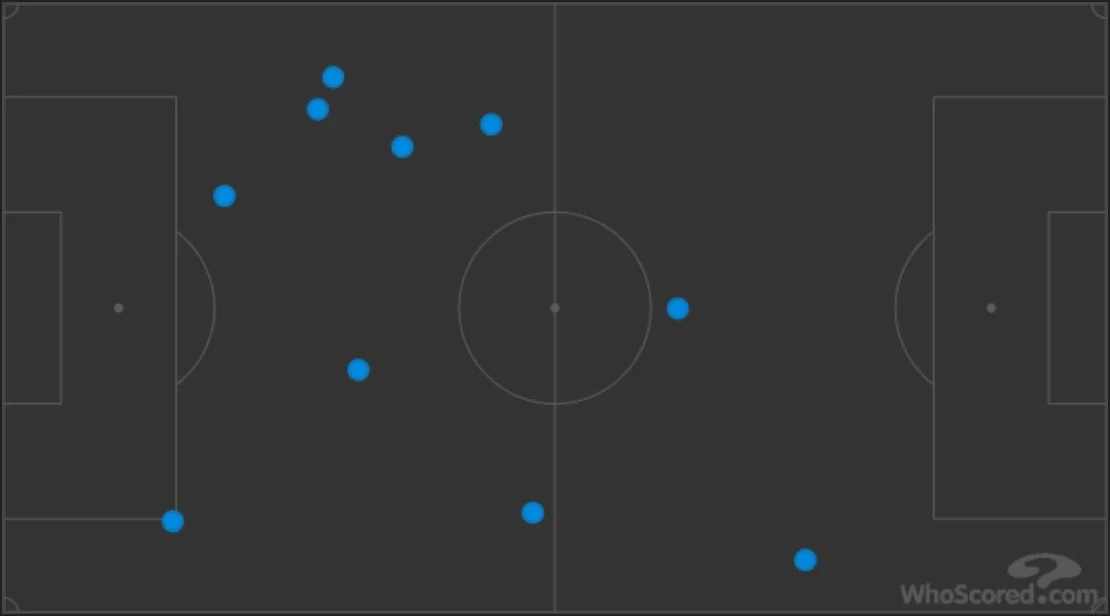 Важко визначити чітку позицію українця на полі. Найбільше часу в першому таймі він проводив у ролі правого атакувального хавбека, але на початку зустрічі активно обмінювався позиціями з Пашалічем і Гомесом, сідаючи навіть зліва в пару до опорника де Рона.