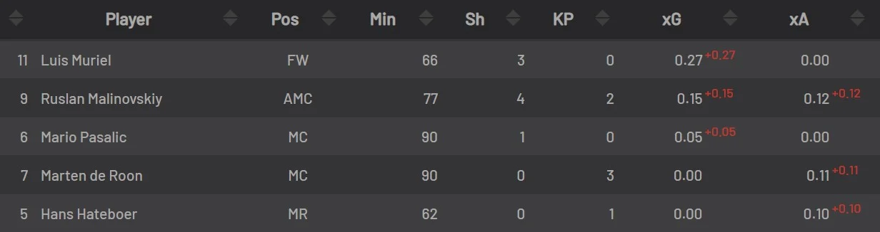 Аталанта у попередньому турі несподівано поступилася Кальярі, а на тижні відібрала очки в Манчестер Сіті у Лізі чемпіонів. Руслан Маліновський 4 матчі поспіль розпочинав на лаві запасних бергамасків, але сьогодні тренерський штаб вирішив повернути його в стартовий склад.