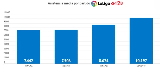 Пристойна конкуренція посприяла різкому зростанню відвідуваності поєдинків. У середньому стадіони на матчах Сегунди збирають понад 10 тисяч глядачів. Ще якихось два роки тому цей показник коливався на рівні 7 тисяч.