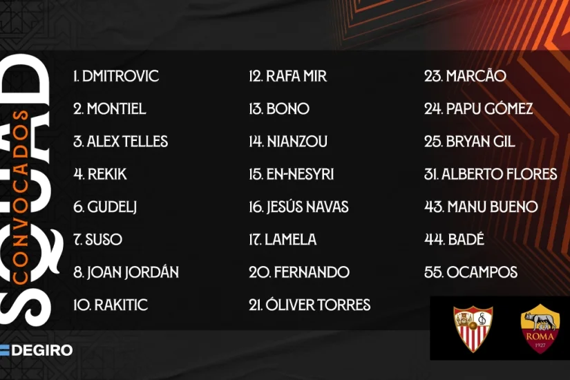 Севілья визначилася із заявкою на фінал Ліги Європи. Як інформує офіційний сайт клубу, Хосе Луїс Менділібар вирішив узяти разом зі складом команди недоступних гравців – дискваліфікованого Маркоса Акунью та незаявлених на турнір Папа Гуйє і Хесуса Корону.
