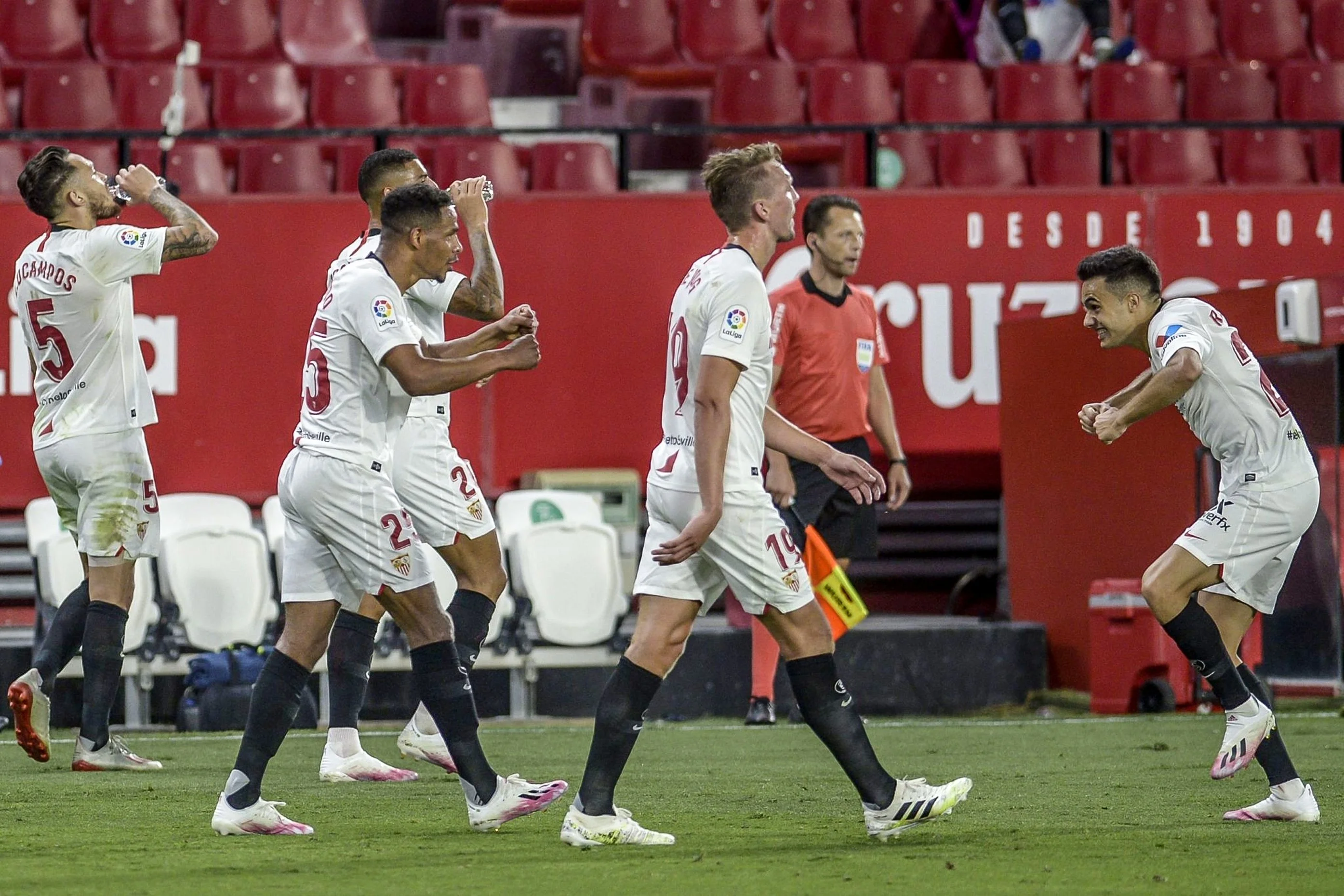 Відновлення чемпіонату Іспанії припало на андалусійське дербі, до якого як слід підготувалися працівники стадіону "Рамон Санчес Пісхуан" і телевізійники. Перші увімкнули на арені інтершум, а другі на нижньому ярусі намалювали відеоефект присутності глядачів. Вийшло незвично, але цікаво.