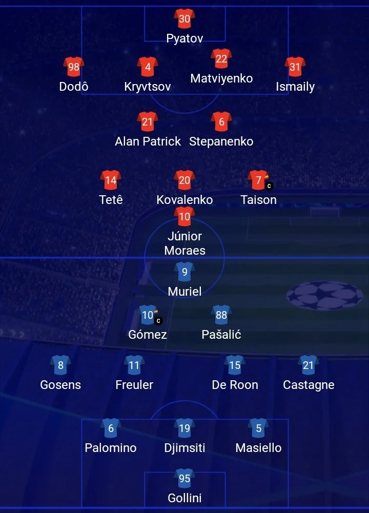 Аталанта: Голліні – Мас'єлло, Джімшиті, Паломіно – Кастань, Де Рон, Фройлер, Госенс – Пашаліч, Гомес (к) – Мурієль