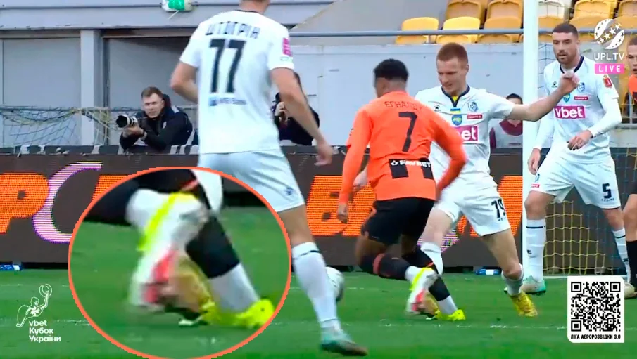 На 43-й хвилині донеччани таки добилися свого – Егіналду увійшов до карного майданчика й хитнув Салюка. Володимир викинув ногу вперед, а бразилець впав. Пенальті!