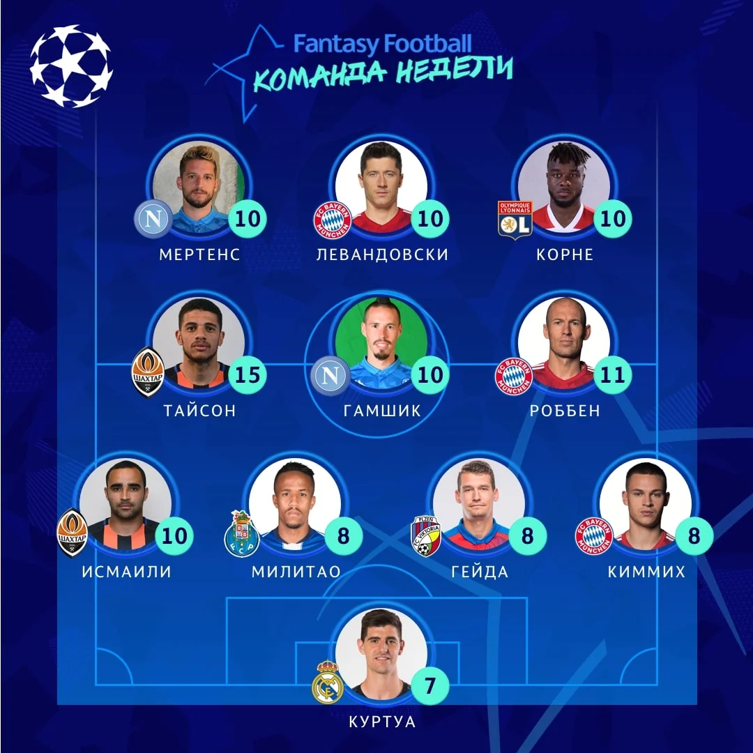 УЄФА традиційно назвав 11 найкращих гравців чергового туру групового етапу Ліги чемпіонів, які набрали найбільше пунктів у грі Fantasy Football.