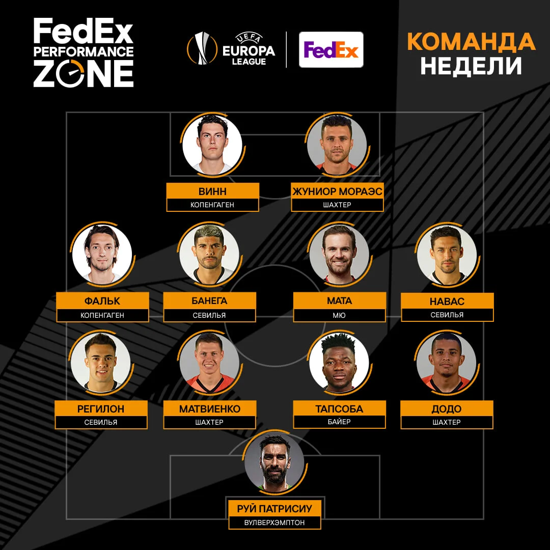 До символічної команди потрапили відразу три представники донецького Шахтаря – Микола Матвієнко, Додо та Жуніор Мораєс. Відзначимо, що у "гірників" не найбільше представництво – стільки ж виконавців делегувала Севілья.