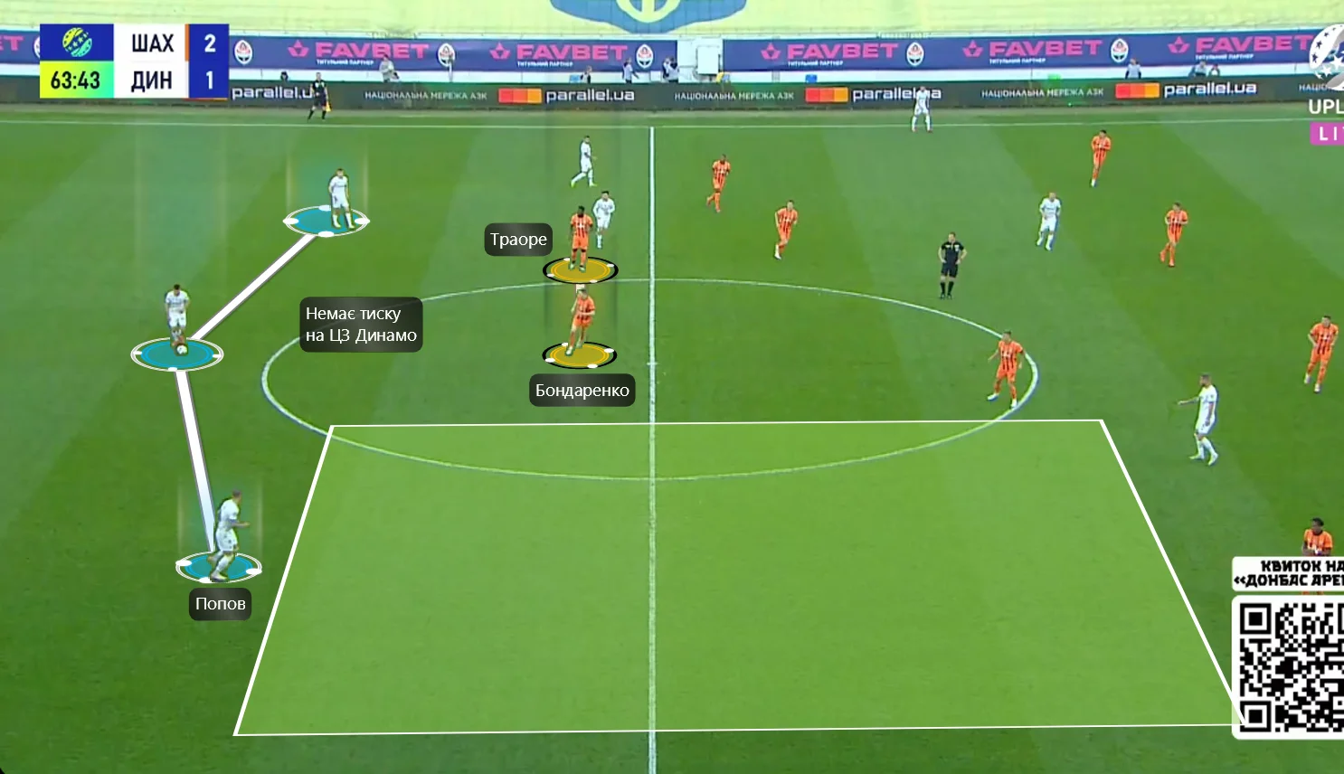 Хоча Динамо легко зламувало опорну зону Шахтаря навіть до перерви, перевантажуючи її вриваннями вінгерів у позиційних атаках. І це при тому, що Маріно Пушіч поставив у центр Матвієнка – не найкращого руйнівника, але все ж профільного оборонця. До нього в обороні ще й опускався Бондаренко.
