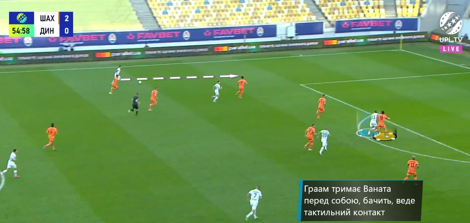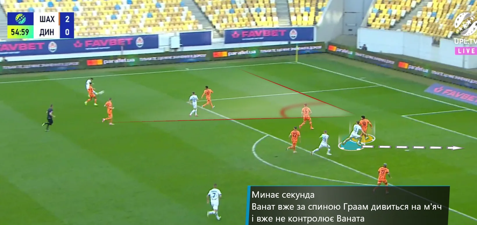 Ідея ніби й непогана, от тільки тоді в центрі оборони доводиться грати Граму, якому рівень УПЛ і конкретно Ванат даються вкрай важко. До того ж, низька позиція Бондаренка призводило до браку футболістів на чужій половині поля при перехідних фазах.