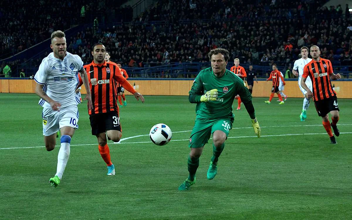 У Динамо на 17-й хвилині Ярмоленко намагався перекинути Пятова, однак вийшло лише слабко пробити в його бік. А наприкінці першого тайму Ярмоленко втратив супермомент. Гармаш прорізав захист Шахтаря ідеальним пасом, однак партнер, обігравши Пятова, не влучив з гострого кута у порожні ворота.