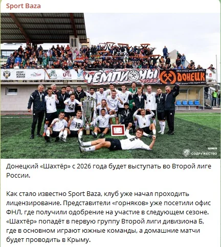 Футбольний клуб під назвою Шахтар з 2026 року виступатиме у Другій лізі Росії. Про це повідомляє Sport Baza.